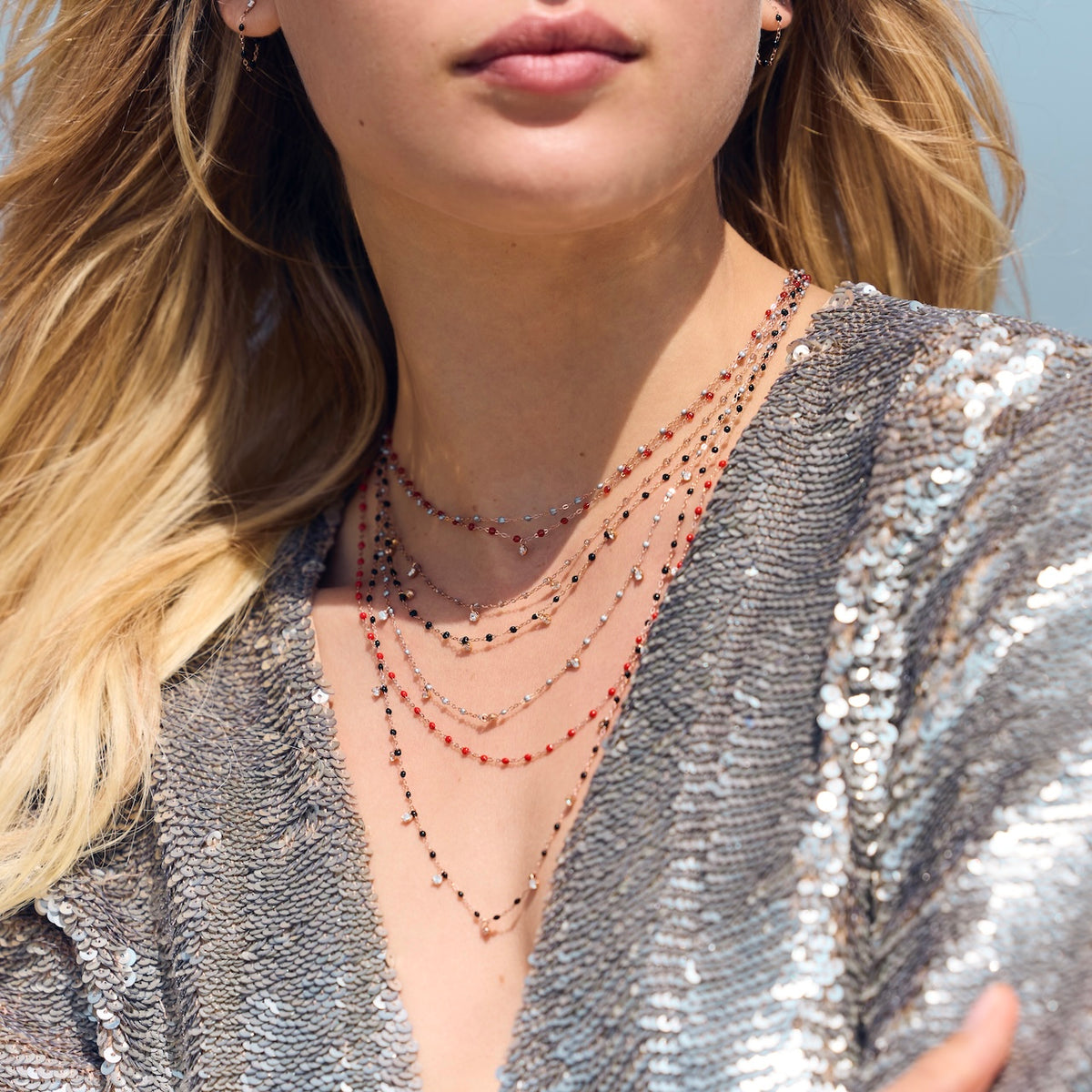 Collares Gigi que danzan con la luz, posándose en tu piel como un toque helado de magia, capturando la suavidad de la temporada y el encanto del momento. ¡Ahora es el momento de brillar!