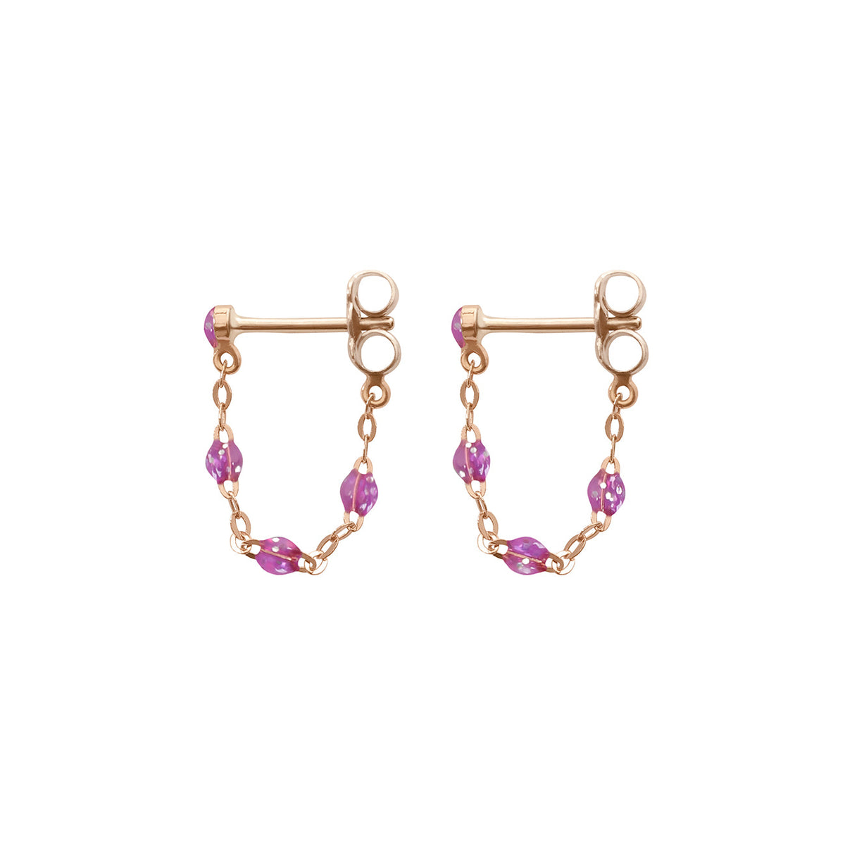 The Classic Gigi earring with resin pearls by gigi CLOZEAU features signature 18 carat rose Gold and galaxy resin pearls for a colorful and discrete appeal.