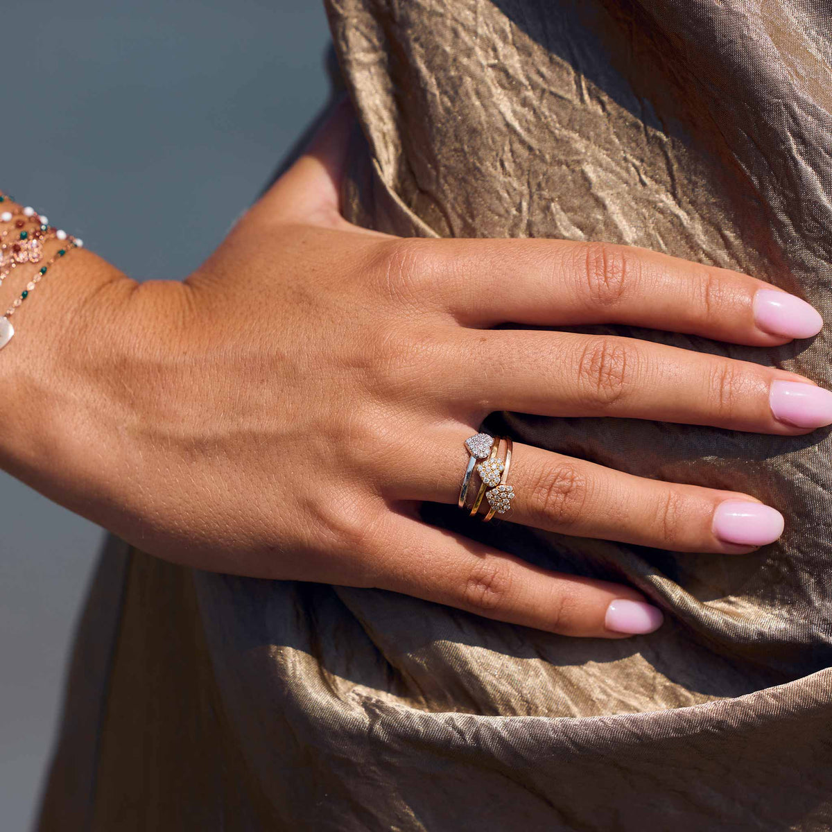 • Photo de la main d’une femme portant une bague 'In Love' de Gigi Clozeau.
