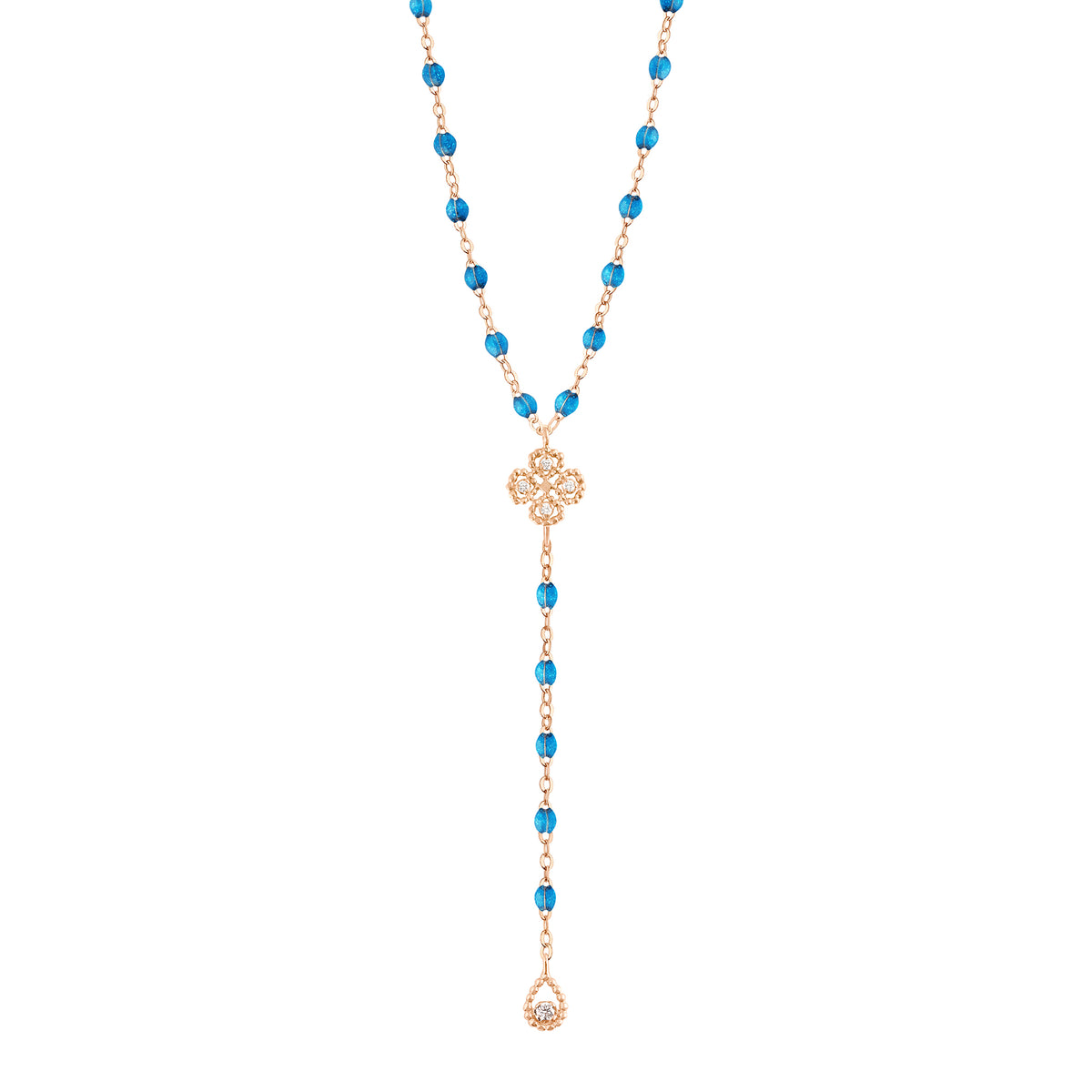 Gigi Clozeau - Chapelet azur Lucky Trèfle, diamants, or rose, 45 cm
