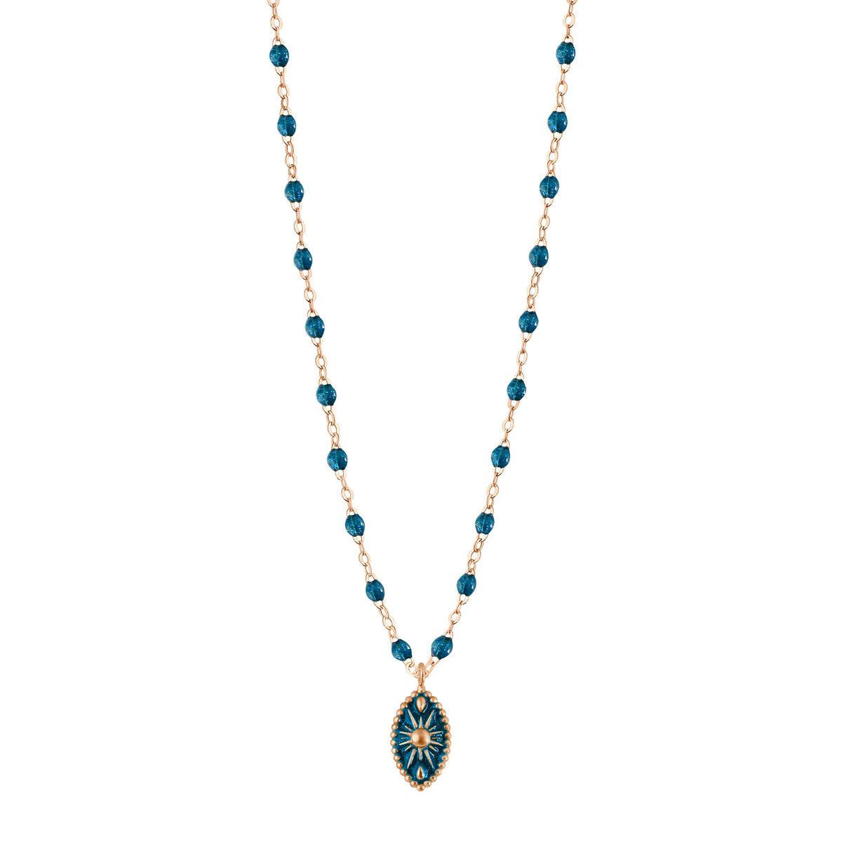 Le Collier Karma gigi Clozeau en or rose 18 carats se dévoile sur la chaîne classique gigi, ponctuée d’élégantes perles de résine jungle. Son pendentif au contour finement perlé incarne un talisman précieux, à la fois protecteur et lumineux.
