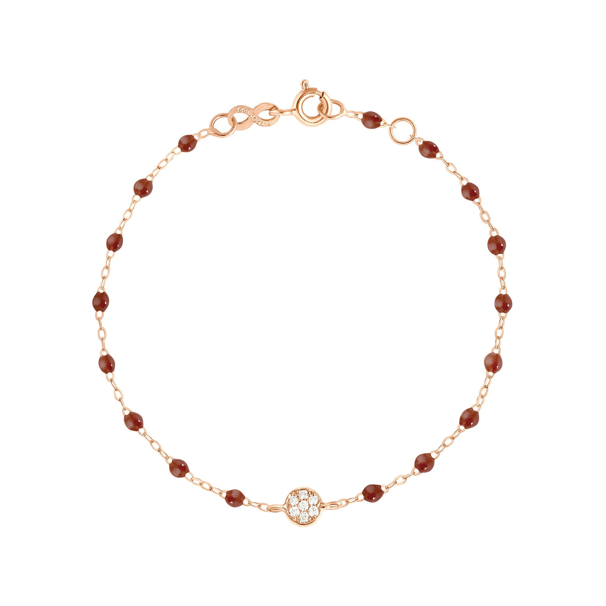 Como una nube de polvo de estrellas que siembra suavemente la alegría por donde pasa, la pulsera «puce» con cadena Classique Gigi de gigi CLOZEAU es un delicado amuleto de la suerte. 7 diamantes, oro de 18 quilates y elegantes cuentas de resina.