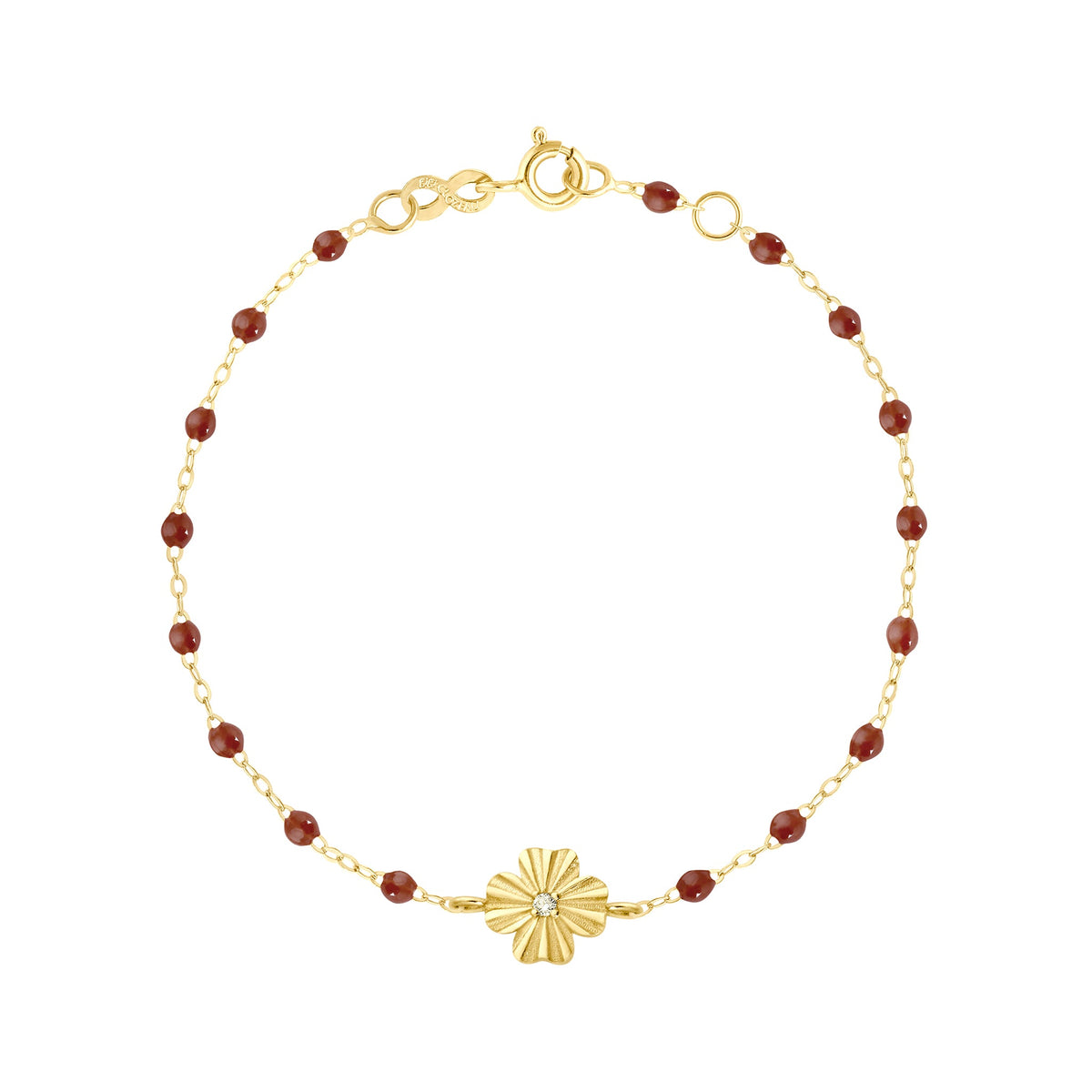 Pulsera trébol Lumière moka, diamante, oro amarillo, 17 cm