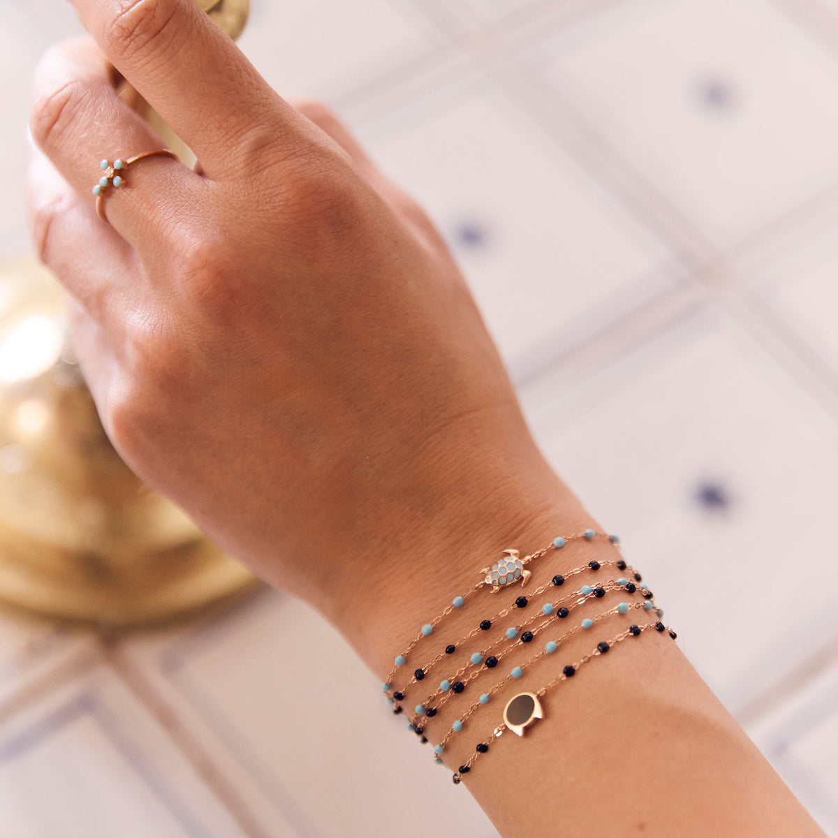 Pulsera Classique Gigi con colgante «Tortuga» de resina turquesa y oro rosa de 18 quilates.