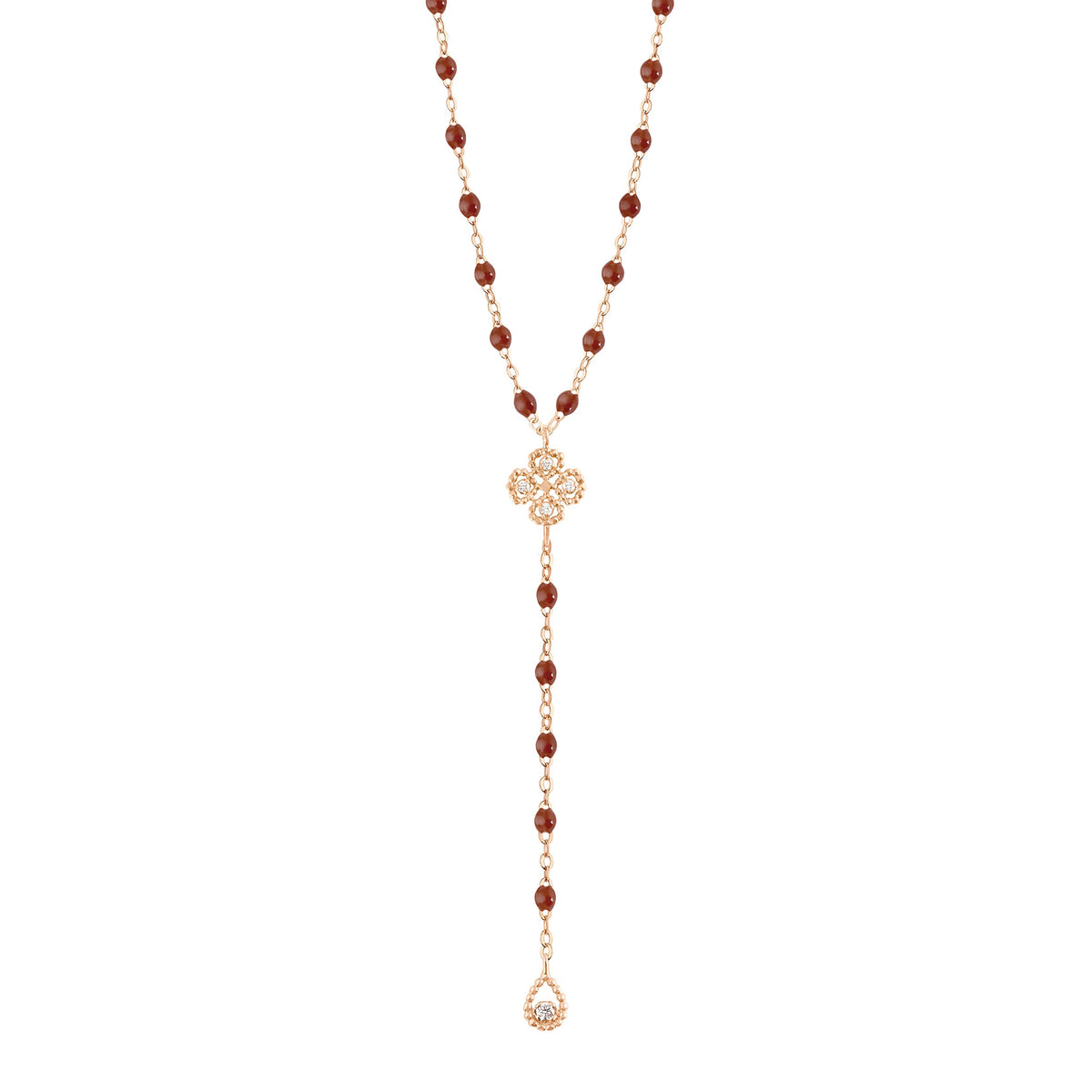 Collar estilo rosario moka Lucky Trèfle, diamantes, oro amarillo, 45 cm