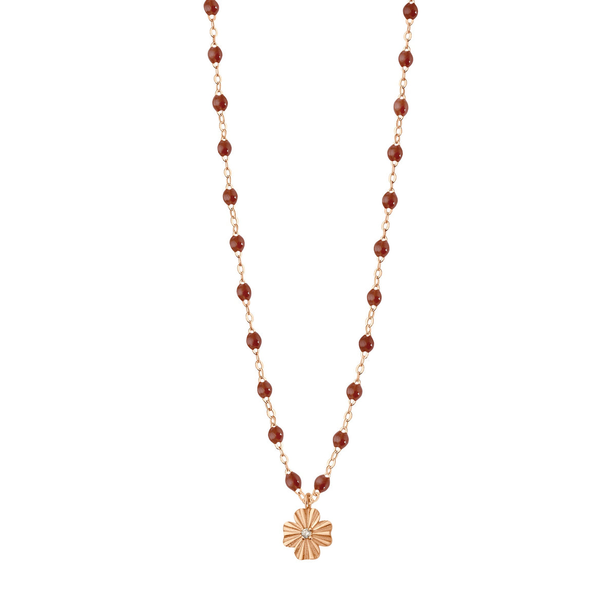 Gigi Clozeau - Collier moka Trèfle Lumière, diamant, or rose, 42 cm